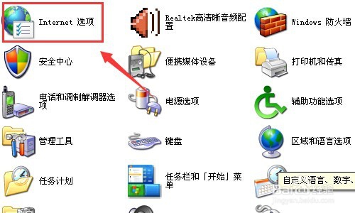 在控制面板点击Internet选项,弹出Internet属性对话框。