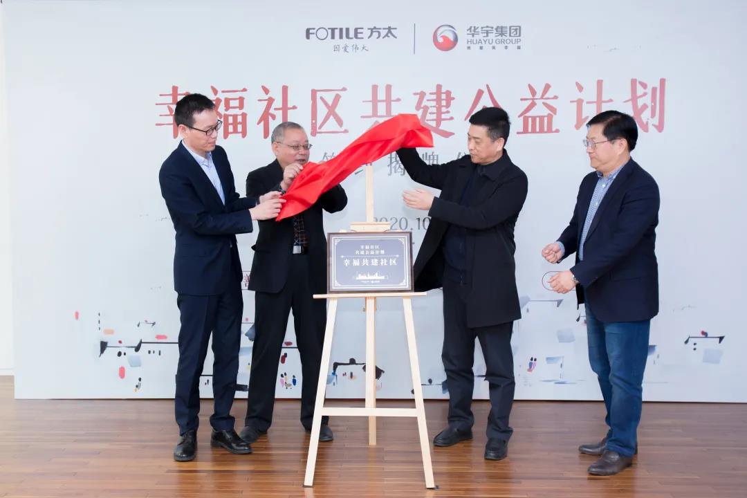 为华宇集团旗下的社区揭开“幸福共建社区”的牌匾