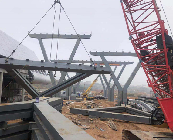 【概要描述】鋼結構建築的室外部分,為了設計較好的視覺效果,通常會使用異型立柱,如Y型立柱,用來支撐屋頂、地面走道的穹頂結構。Y型結構立柱一般采用分段加工的鋼構件,現場焊裝成型,所以會使得焊接難度增大。并且Y型鋼結構立柱有着重量大、重心定位難的特點。因此在吊裝過程中更容易産生扭轉及擺動,增加吊裝難度。那麼針對其内部焊接難,吊裝要求難度大等問題,超大箱型Y型變截面鋼立柱加工及施工技術可以很好的解決應對以上問題。