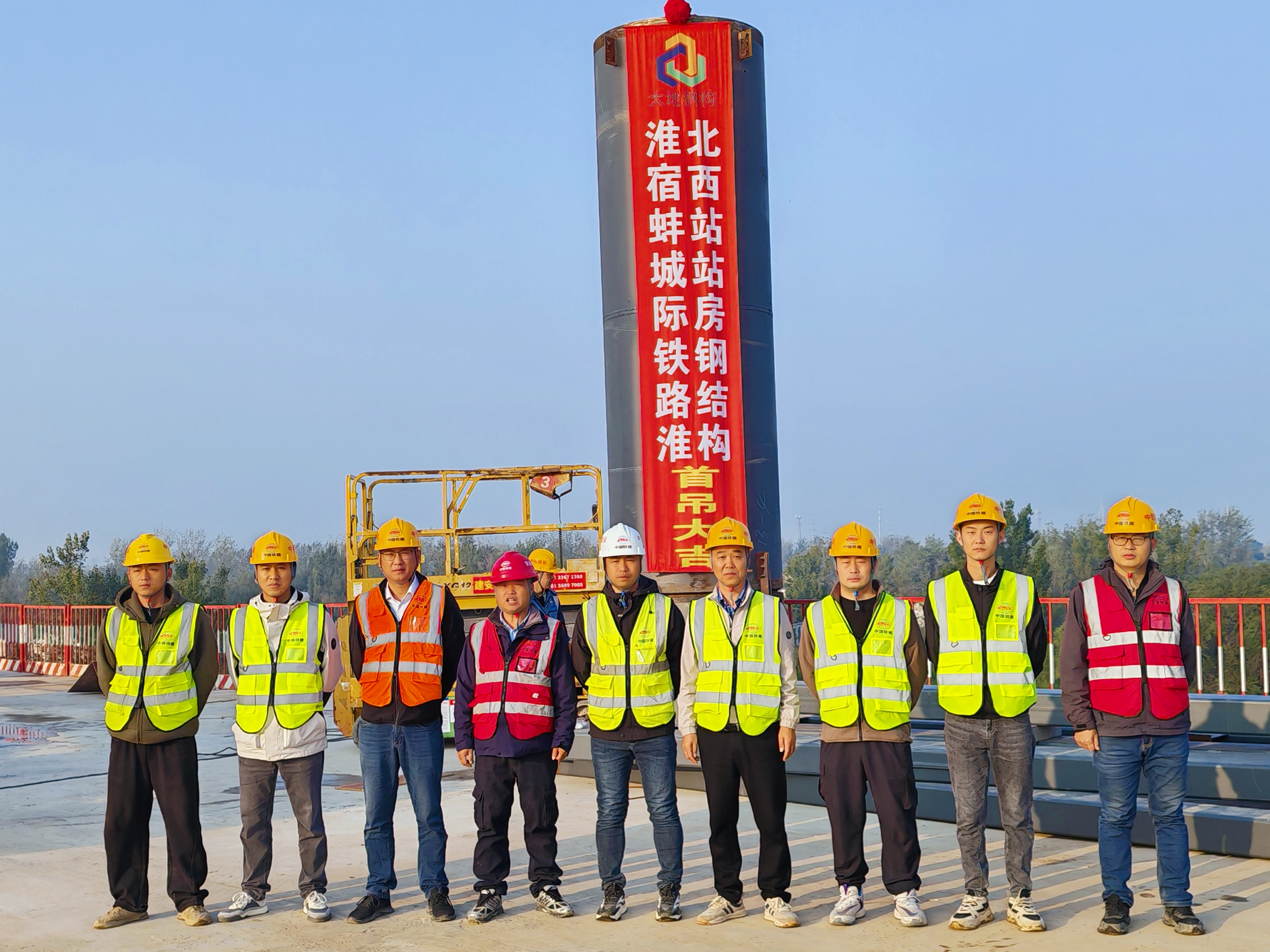淮宿蚌城際鐵路淮北西站站房鋼結構工程順利首吊