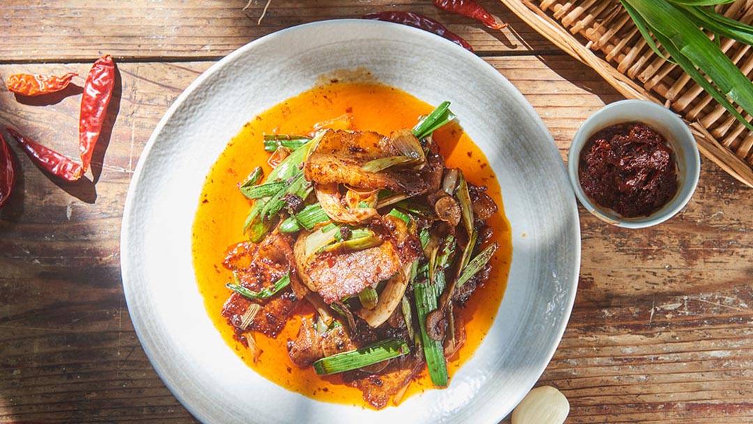 油亮亮的回锅肉里,加入了川菜的灵魂伴侣豆瓣酱,让人食欲大增,选用劲道的猪后腿肉或者二刀肉是最合适不过的了,浸着猪油香气的蒜苗吃起来也格外香。