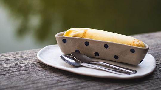 一个方案是在两餐之间吃,把香蕉切成小丁,配无糖酸奶。这样既能给酸奶提供甜味,又不会摄入过多的糖分。