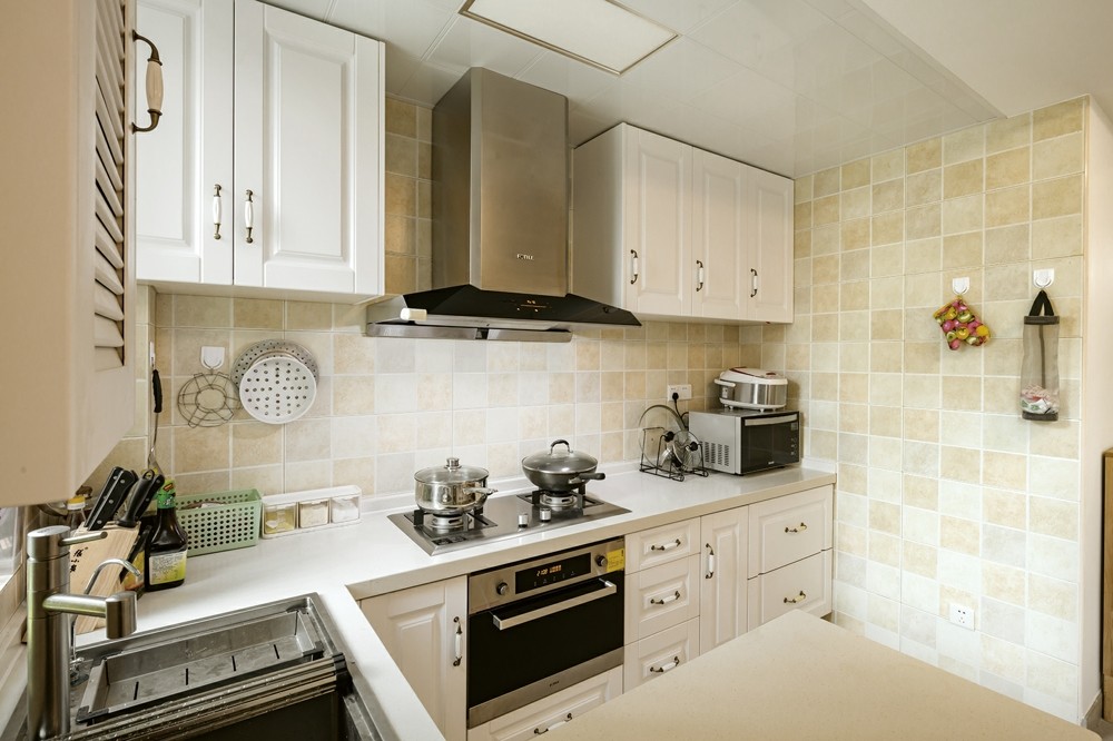 - 材质上,橱柜板材与台面一定要选择防火、防水、防潮的材料