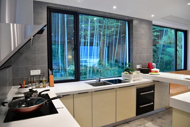 花岗岩在耐腐蚀与耐磨性上表现优异,其丰富的颜色,无论是否打磨抛光,都能营造一种自然而时尚的视觉效果,并且易清洗好打理。不过,作为天然石材,其价格昂贵,并且花岗岩是多孔的材质,安装在灶台墙壁,需要进行密封处理以防止染色噢。
